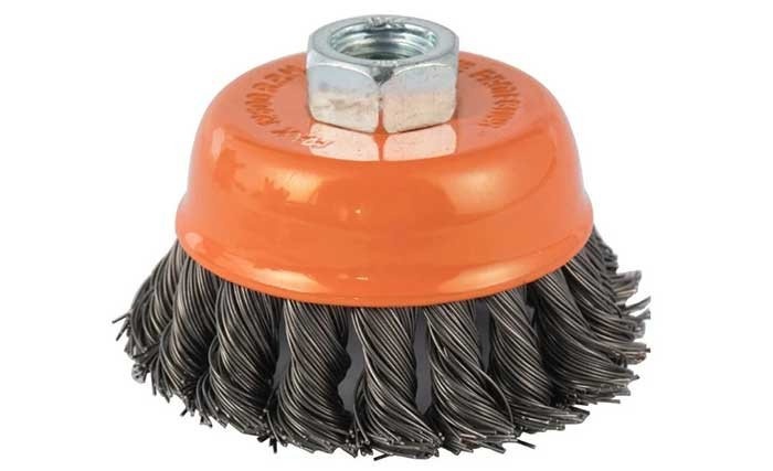 | Основа сделана в виде чашки. Его края снабжены прямой / закрученной металлической щетиной. | Удаление накипи, удаление старой краски с большой поверхности. |