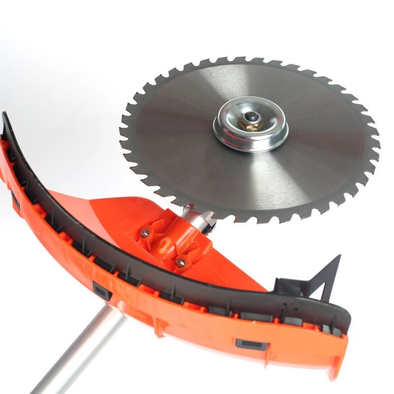 Бензиновая кусторезка способна очистить территорию от мелких сорняков благодаря проволоке. Если необходимо очистить участок от высокой, крупной травы или кустов, используют специальный нож.