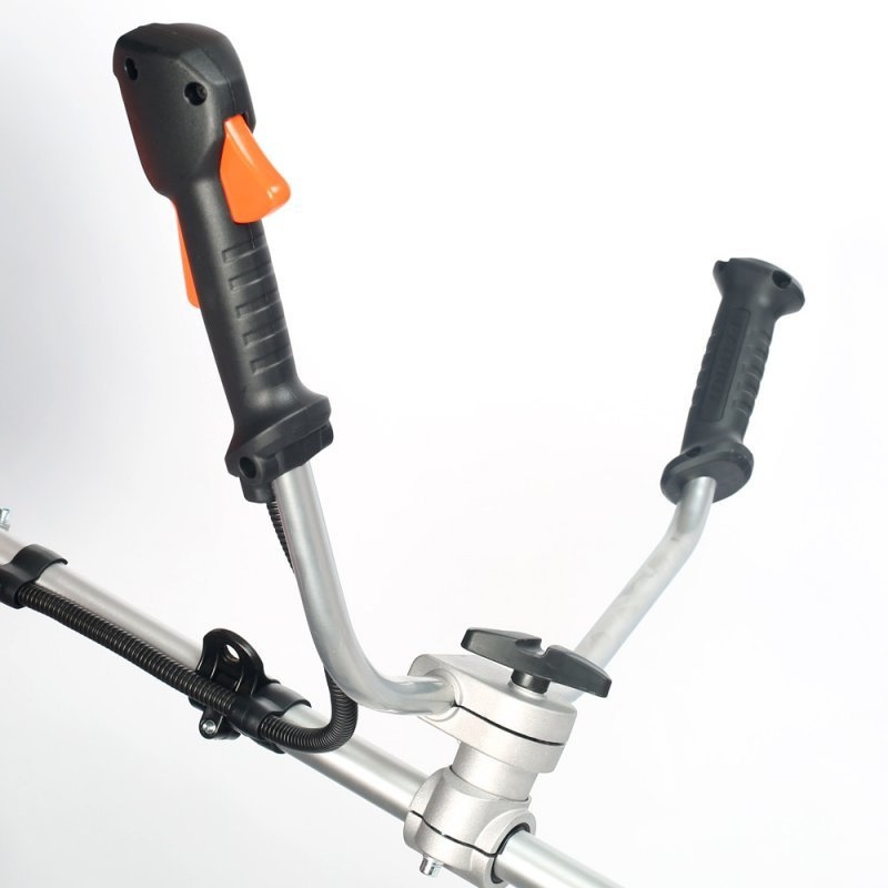 На рукоятке дроссельной заслонки есть специальный замок, предотвращающий случайное нажатие на косилку.