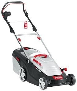 Это мощная электрическая газонокосилка, передвигающаяся на четырех колесах, при этом передняя часть немного меньше задней, что придает модели устойчивость, маневренность и высокую проходимость на любой местности.