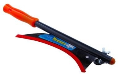 Мини-коса с небольшой изогнутой паутиной длиной около 35 см и прямой косой с хорошей ручкой. Некоторые модели имеют подвижную подставку, позволяющую при необходимости монтировать и разбирать тесьму.