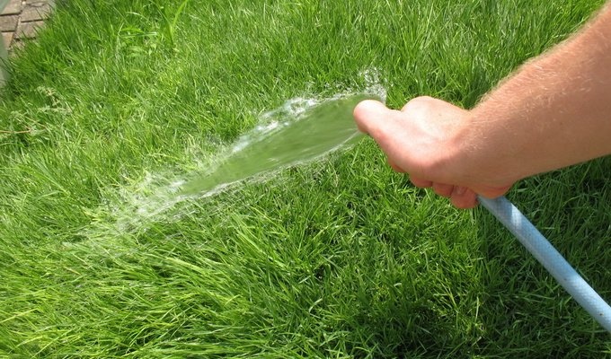 Для поддержания хорошего зеленого газона важны не только частота и время полива, но и температура поливной воды. Не используйте воду из колодцев или колодцев напрямую. Растения испытывают термический шок от холодной воды, перестают поглощать влагу и питательные вещества из почвы. Для полива лучше брать стабилизированную воду, имеющую температуру, близкую к комнатной.