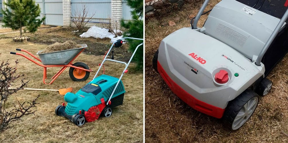 Если участок небольшой, можно обойтись вилами и граблями. Но весной вертикуттер уберет полтора-два кубика мусора. Поэтому летом для поддержания формы использую грабли, а весной набиваю и заводю свой AL-KO Comfort.